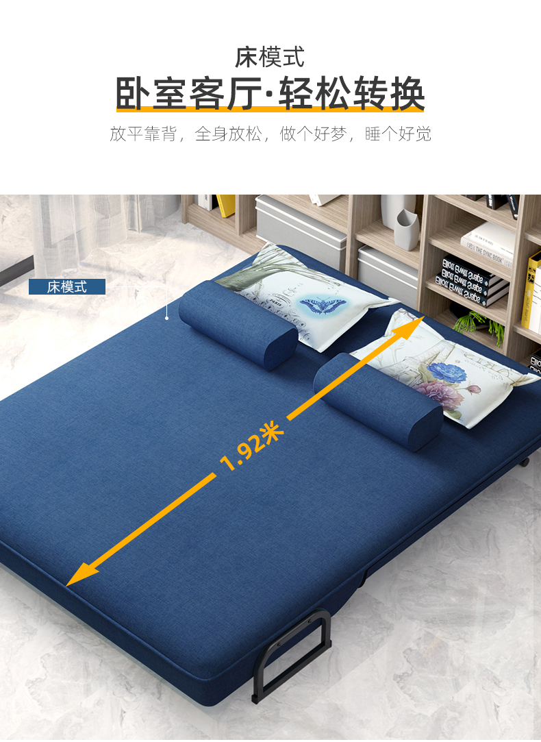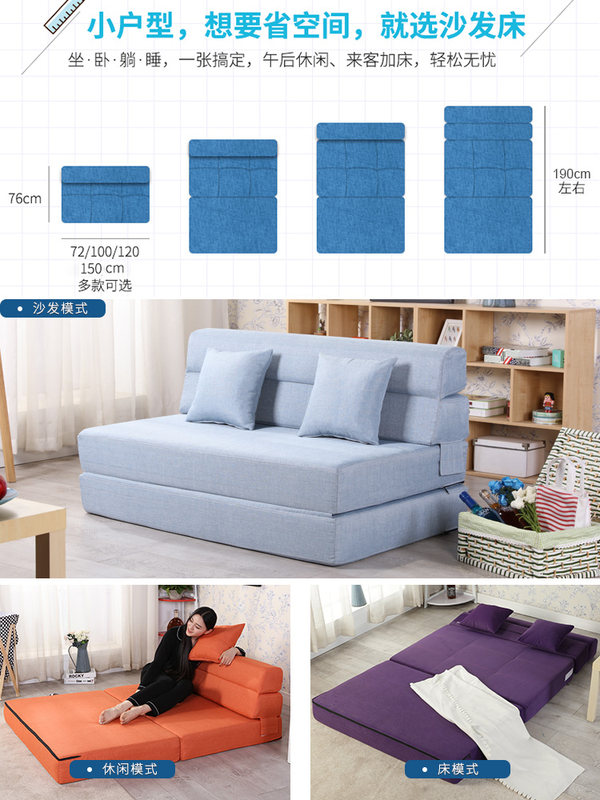使用的材质是大块高密度厚海绵包裹,折叠起来之后,增加坐垫的舒适感,而展开则是厚实舒服的海绵沙发床,款式现代,色调比较明快,年轻人使用的居多。